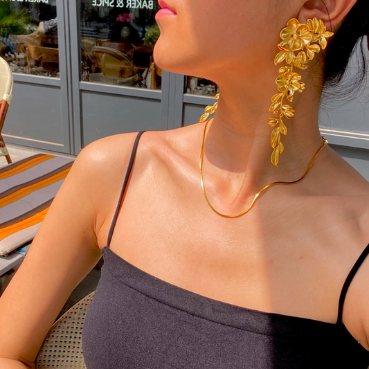Vintage-Inspired Extra-Long Floral Statement Earrings