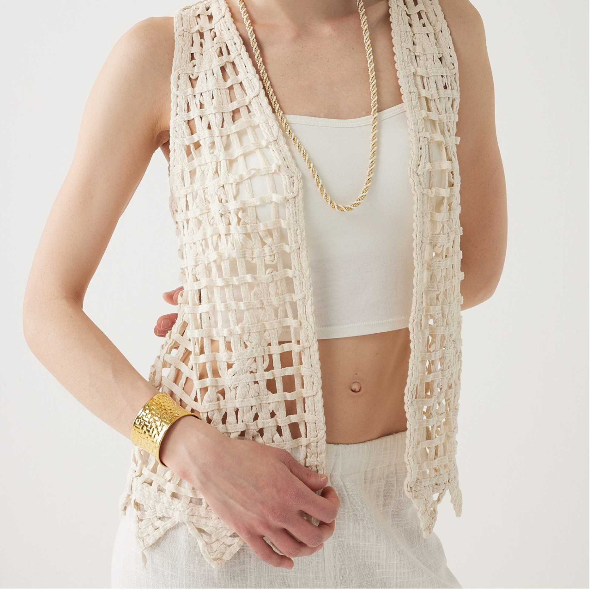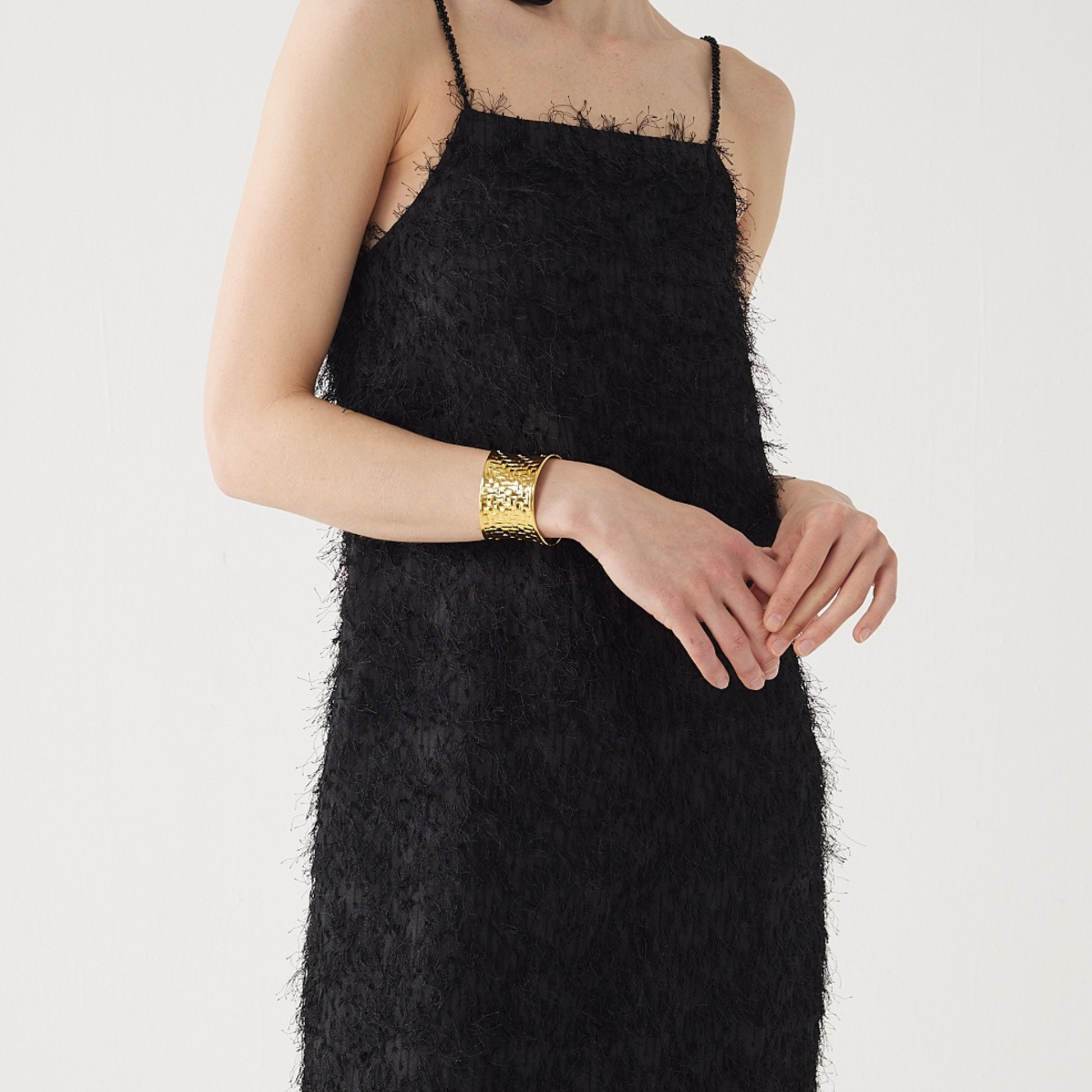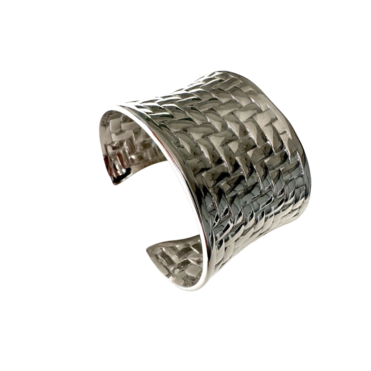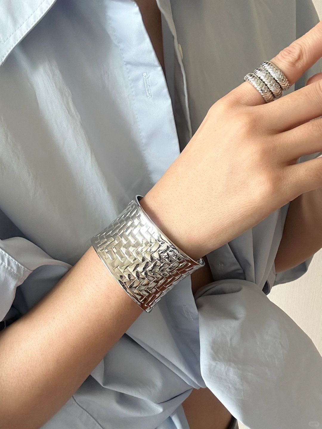 Esta pulsera ancha trenzada, bañada en lujoso oro o plata de 18 quilates, presenta una abertura curva pulida que combina a la perfección una elegancia exquisita con un estilo audaz. Su diseño abierto ofrece un ajuste personalizable, lo que la hace versátil y cómoda. Ligera pero llamativa, agrega un toque distintivo de personalidad y sofisticación a cualquier atuendo.