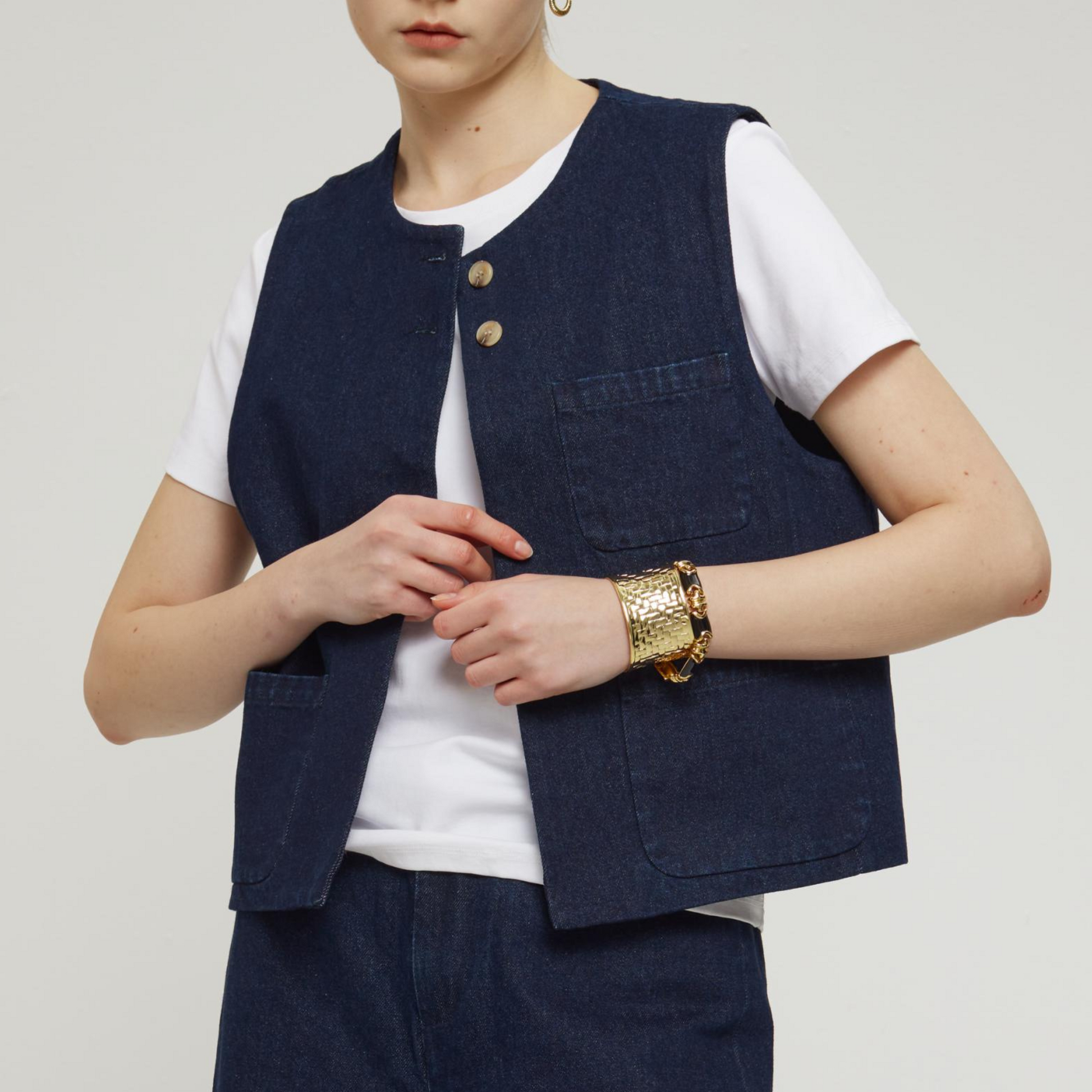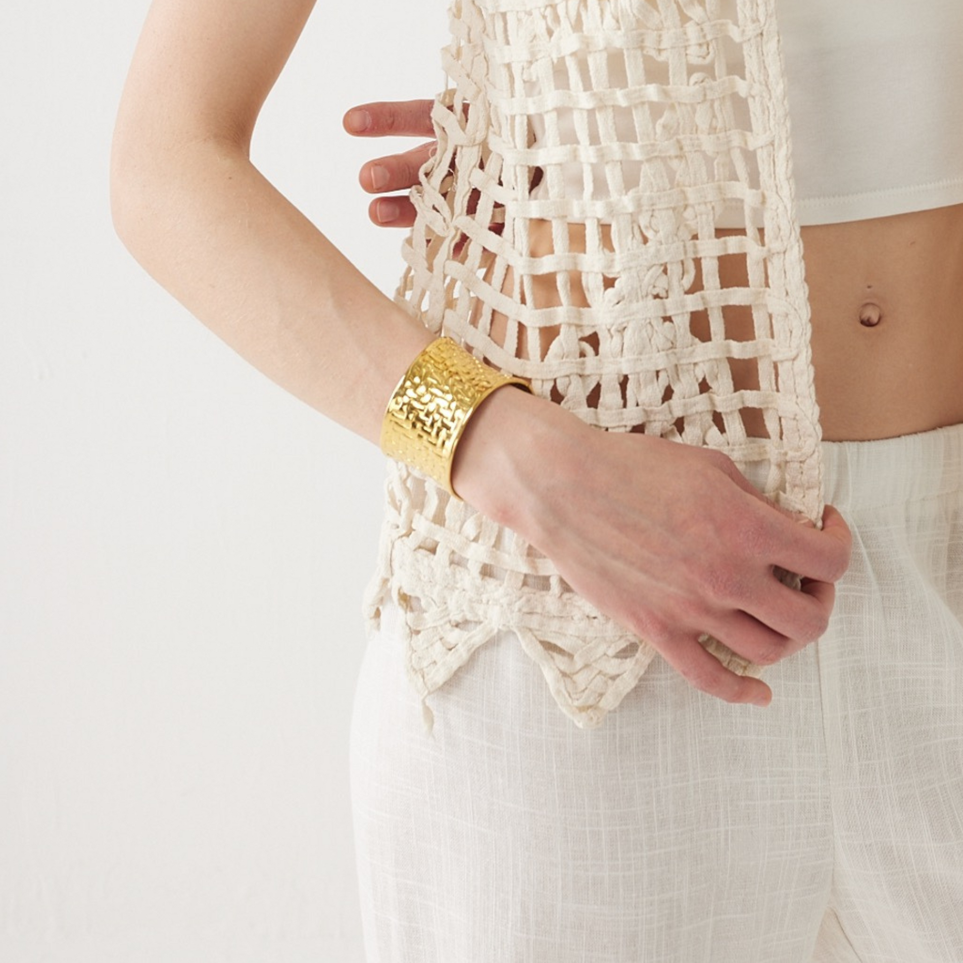 Pulsera ancha trenzada de lujo con estilo vintage | Chapada en oro amarillo de 18 k con latón